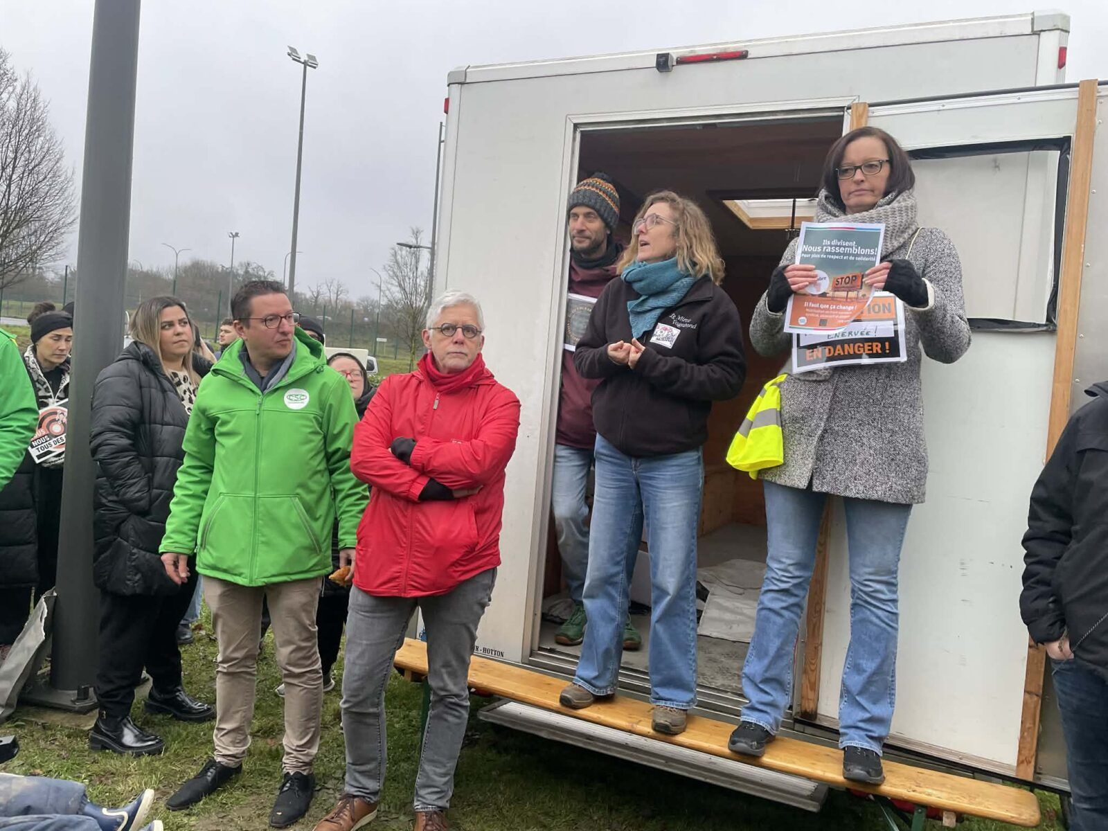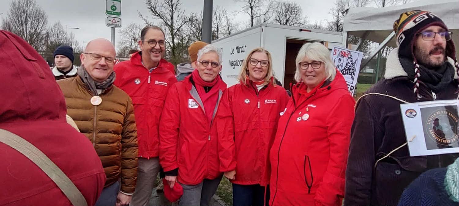 Le point d’orgue a été la mobilisation, ensemble, du monde syndical et de l’associatif à Marche, au rond-point de la Pirire. Autour de notre FGTB Luxembourg et de la CSC, 35 associations de la province (le Trusquin, le Miroir Vagabond, Lire et Ecrire Luxembourg, le Crilux…).