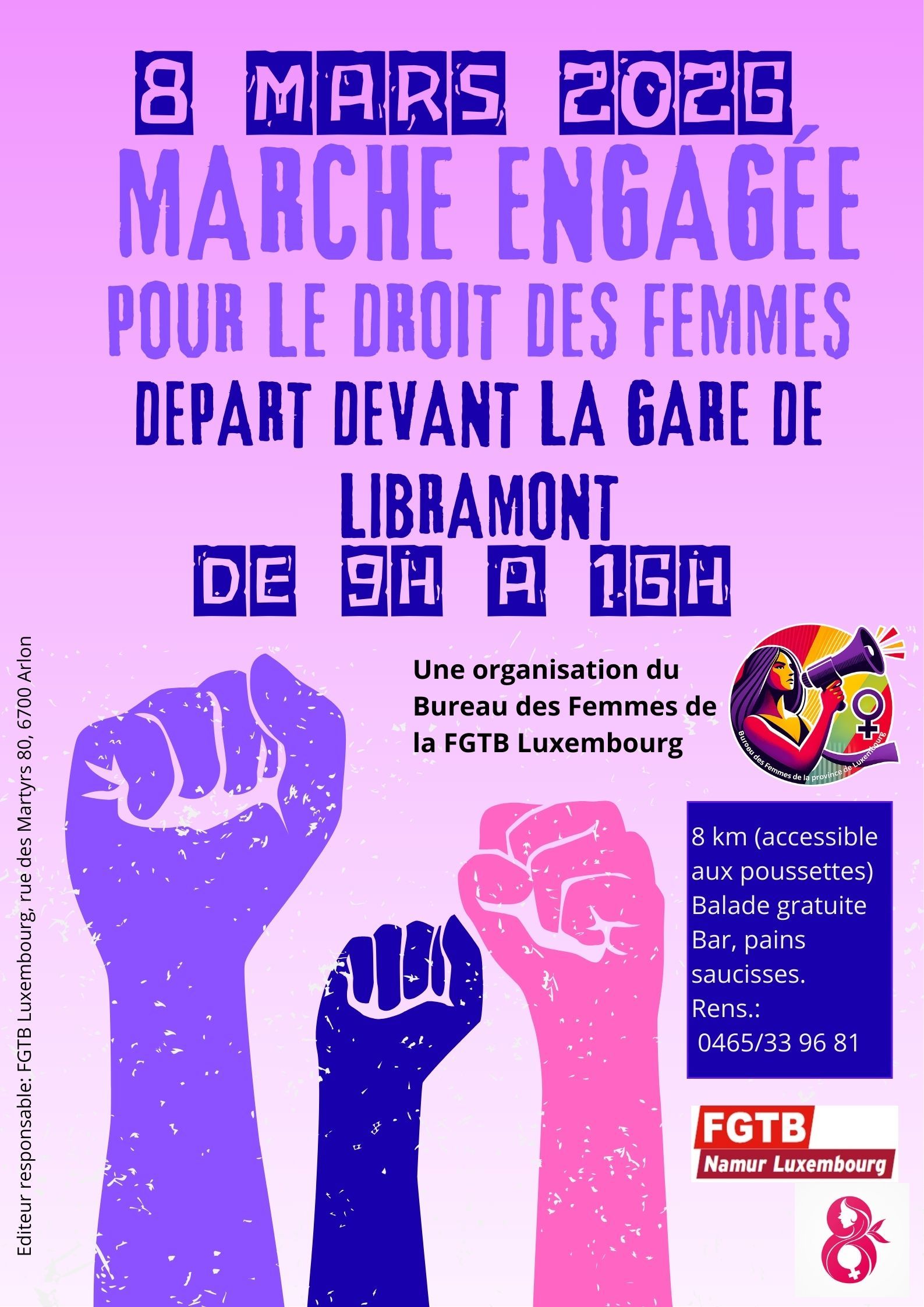 Pour cette Journée internationale des droits des femmes, le Bureau des femmes de notre FGTB Luxembourg organise une marche engagée.