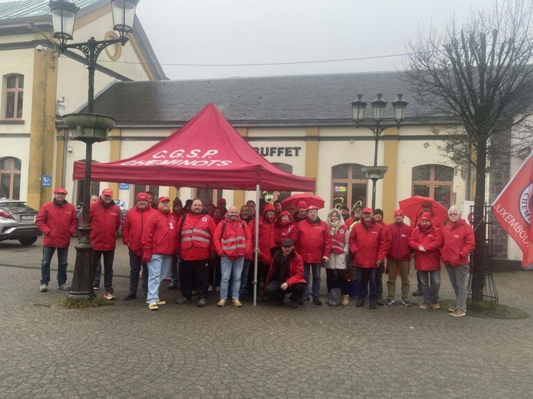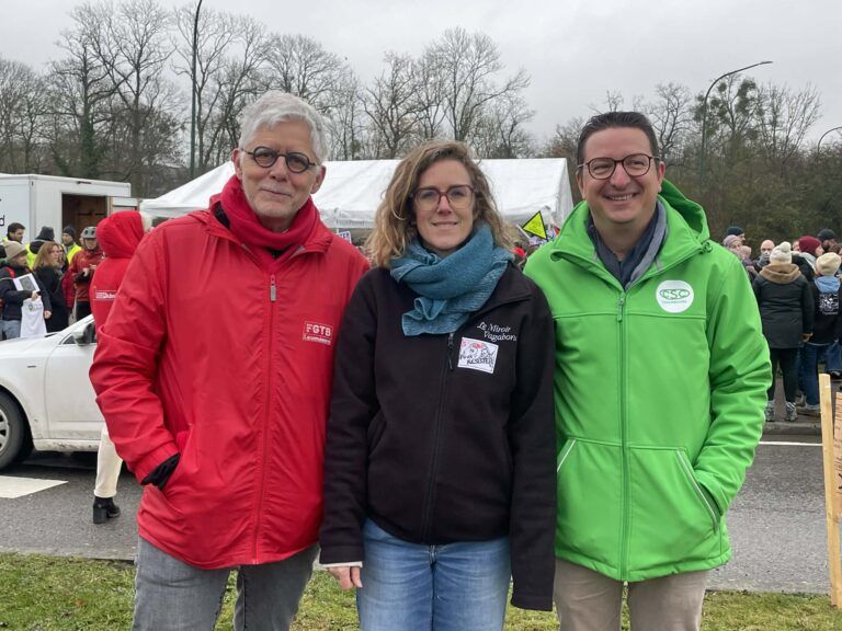 Le point d’orgue a été la mobilisation, ensemble, du monde syndical et de l’associatif à Marche, au rond-point de la Pirire. Autour de notre FGTB Luxembourg et de la CSC, 35 associations de la province (le Trusquin, le Miroir Vagabond, Lire et Ecrire Luxembourg, le Crilux…).